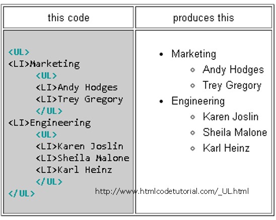 Here is the complete code to make an unordered list to link to a website that we choose either to a page in our own sites or to another site or even an image: